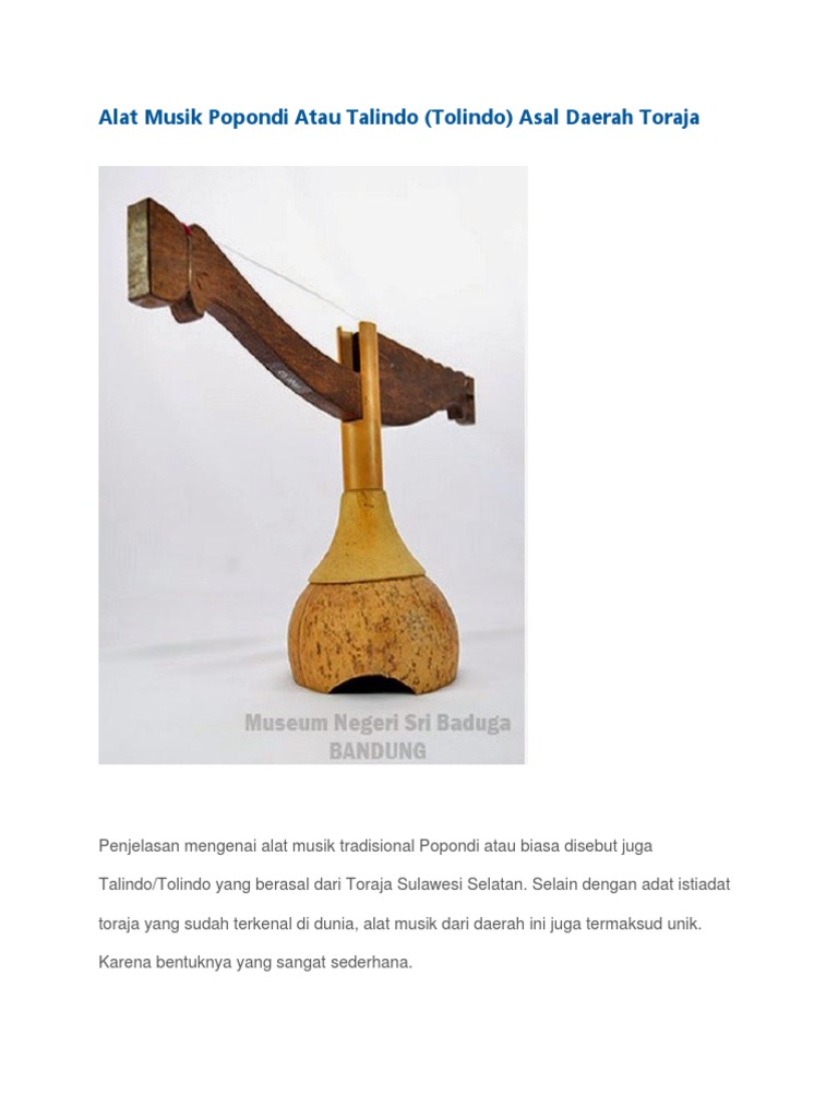 12 Alat Musik Tradisional Sulawesi Selatan Tambah Pinter from i0.wp.com Sekarang anda sudah mengetahui apa saja tarian ada daerah sulawesi selatan. Tambo berasal dari provinsi aceh. Guoto yaitu alat musik yang populer di daerah papua barat yang dapat keluarkan nada type kordofon, langkah memainkannya yakni dengan menuai dibagian senarnya. Tolindo adalah alat musik tradisional khas sulawesi selatan yang tepatnya asalnya dari tanah toraja, dengan berbentuk unik dan sederhana alat musik tradisional tolindo / popondi dipakai pada berbagai acara adat. Namun ganda memiliki tubuh yang lebih ramping dan tinggi. Di daerah makassar, alat musik tradisional ini disebut dengan nama. Bangunan rumah adat sulawesi selatan yang paling terkenal adalah balla lompoa sebagai istana bagi raja gowa. Tolindo merupakan nama alat musik tradisional khas sulawesi selatan yang tepatnya berasal dari tanah toraja, dengan bentuknya yang unik dan juga sederhana alat musik tradisional tolindo atau popondi digunakan dalam berbagai acara adat disana.